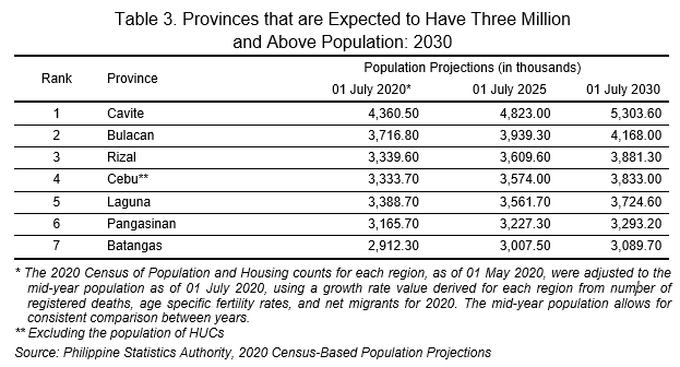 Cavite to remain most populous province with over 5 million by 2030